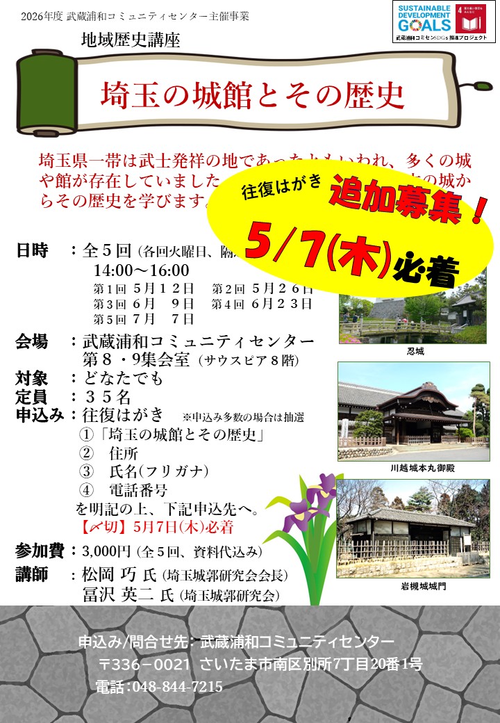 地域歴史講座「埼玉の城館とその歴史」 追加募集!