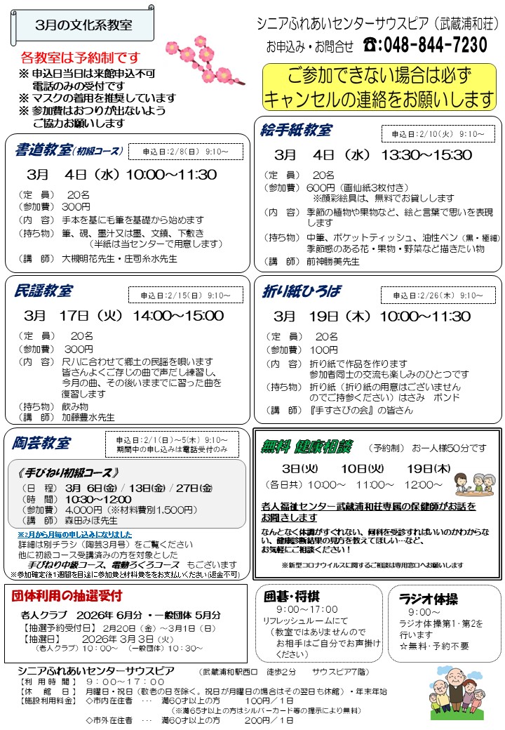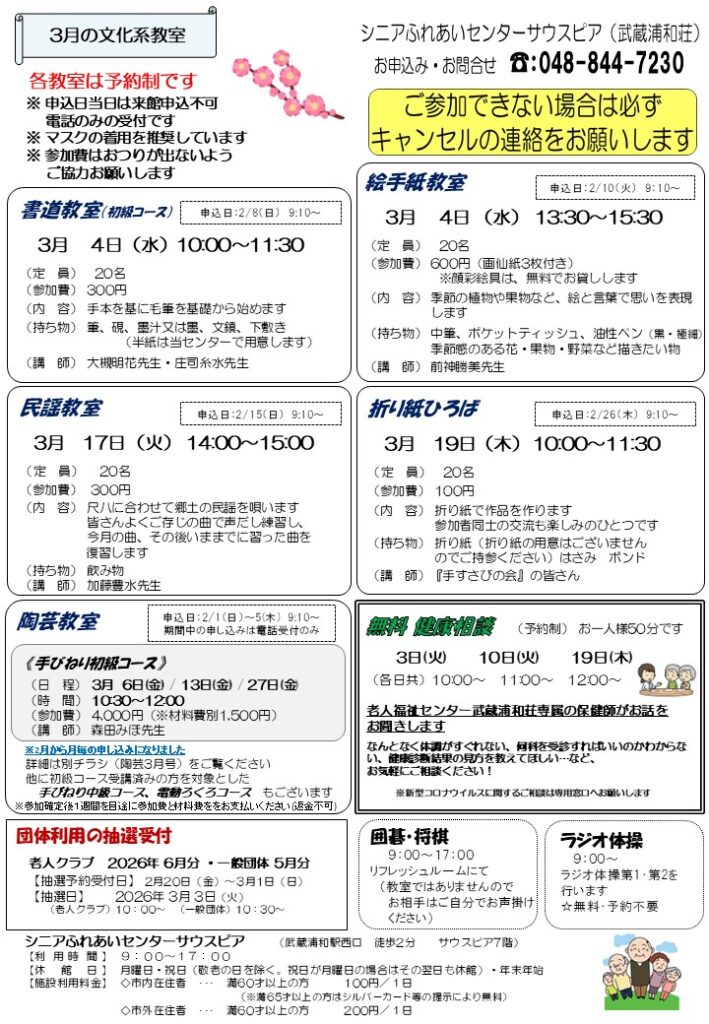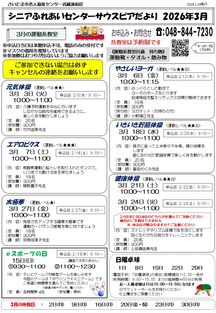 2026年 シニアふれあいセンターサウスピアだより3月号