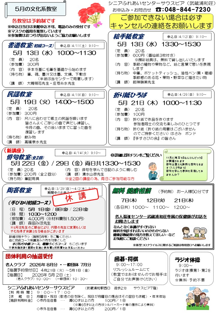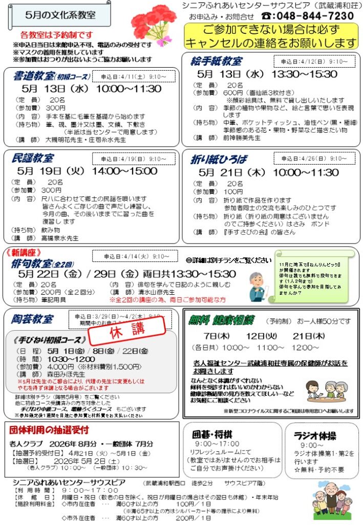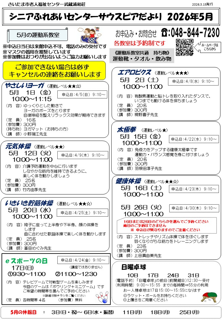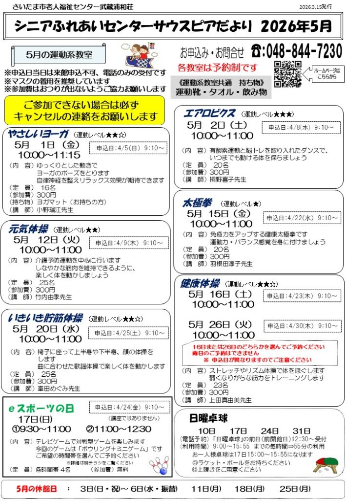 2026年 シニアふれあいセンターサウスピアだより5月号